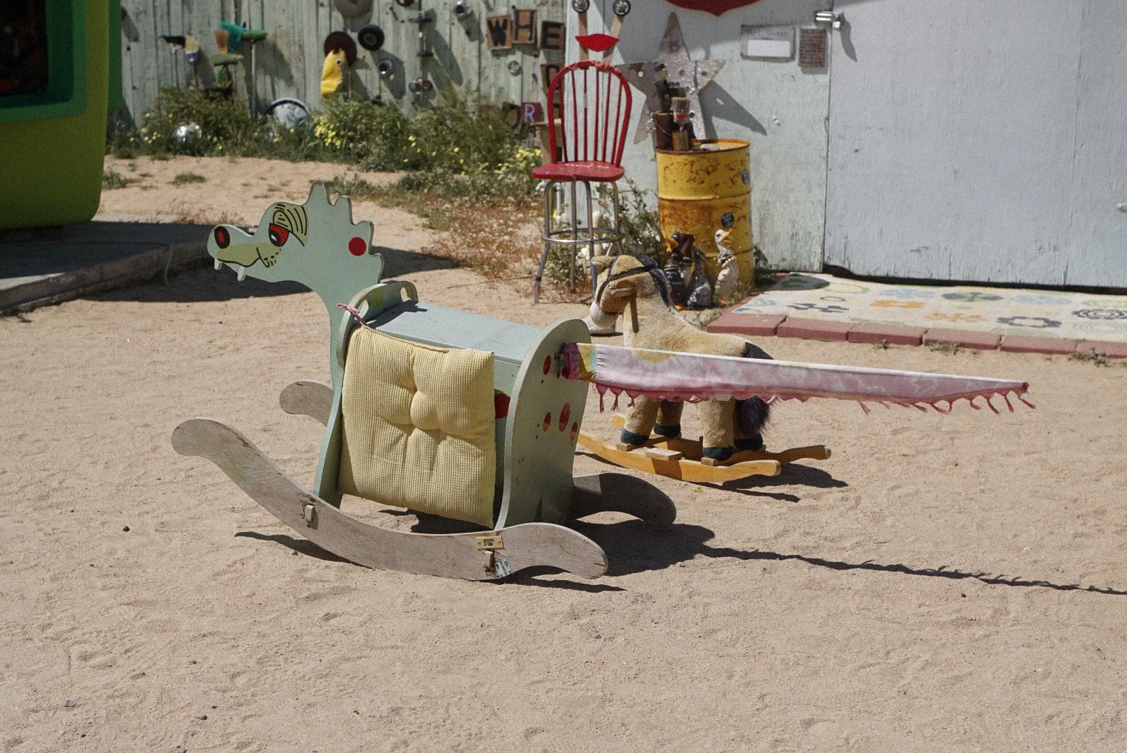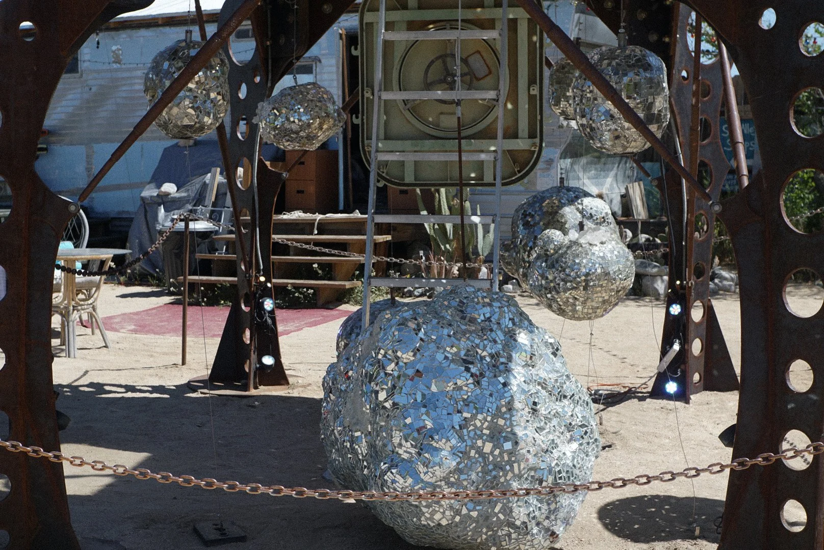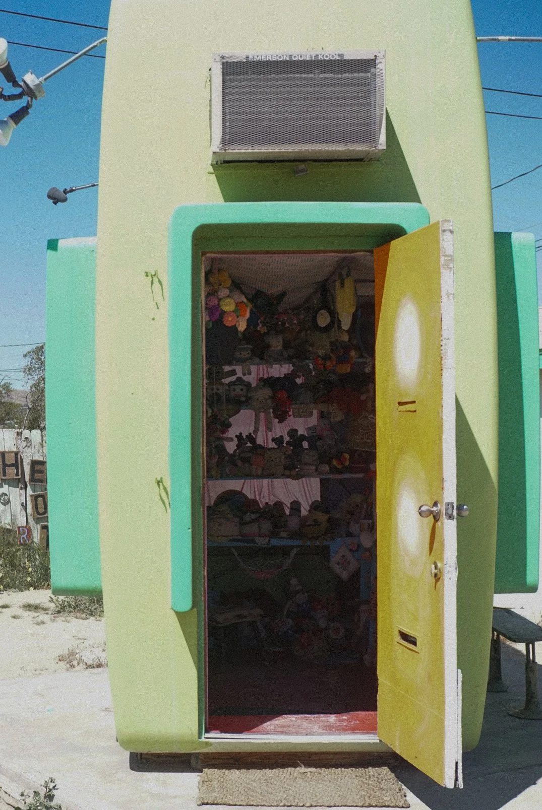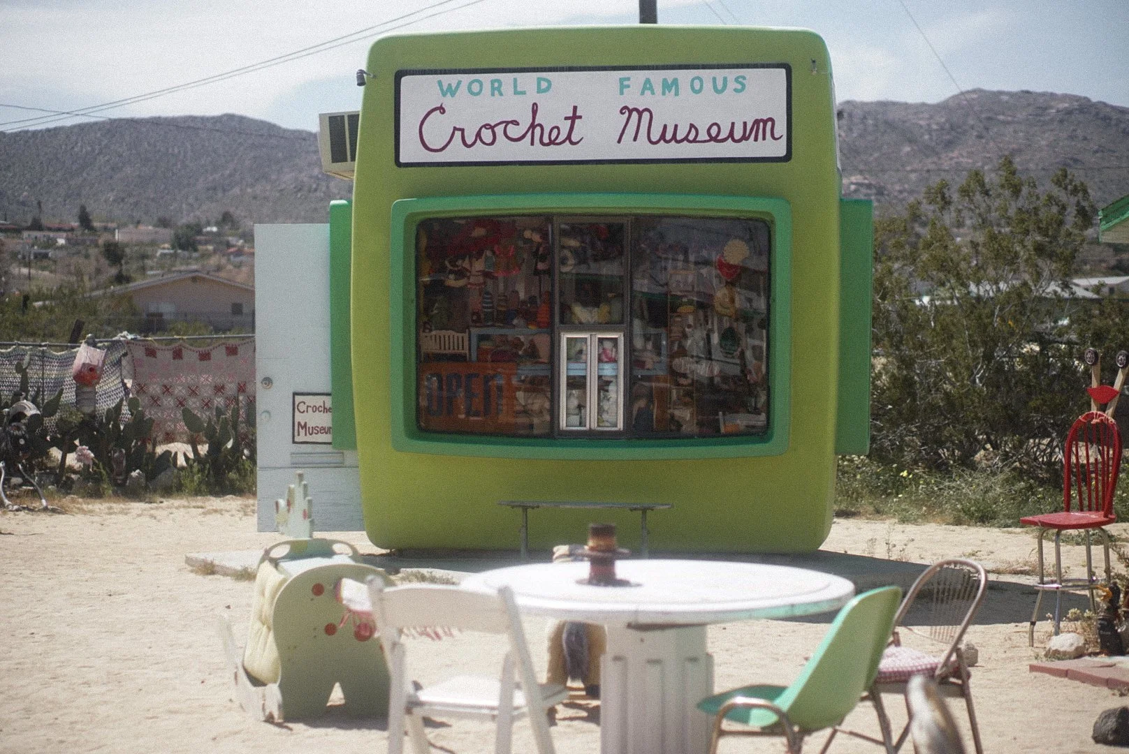 This is an area right off the main highway 62 in Joshua Tree that consists of six buildings of art including The World Famous Crochet Museum, an exhibition space, and a vintage trailer among others. It’s a place that the creators wanted to keep pretty low key, so there isn’t a lot of hoopla around the area. I imagine there may be slightly more foot traffic on the weekends, but at the day and time I went, there were very few people out there, so it made for the perfect photo opportunity.