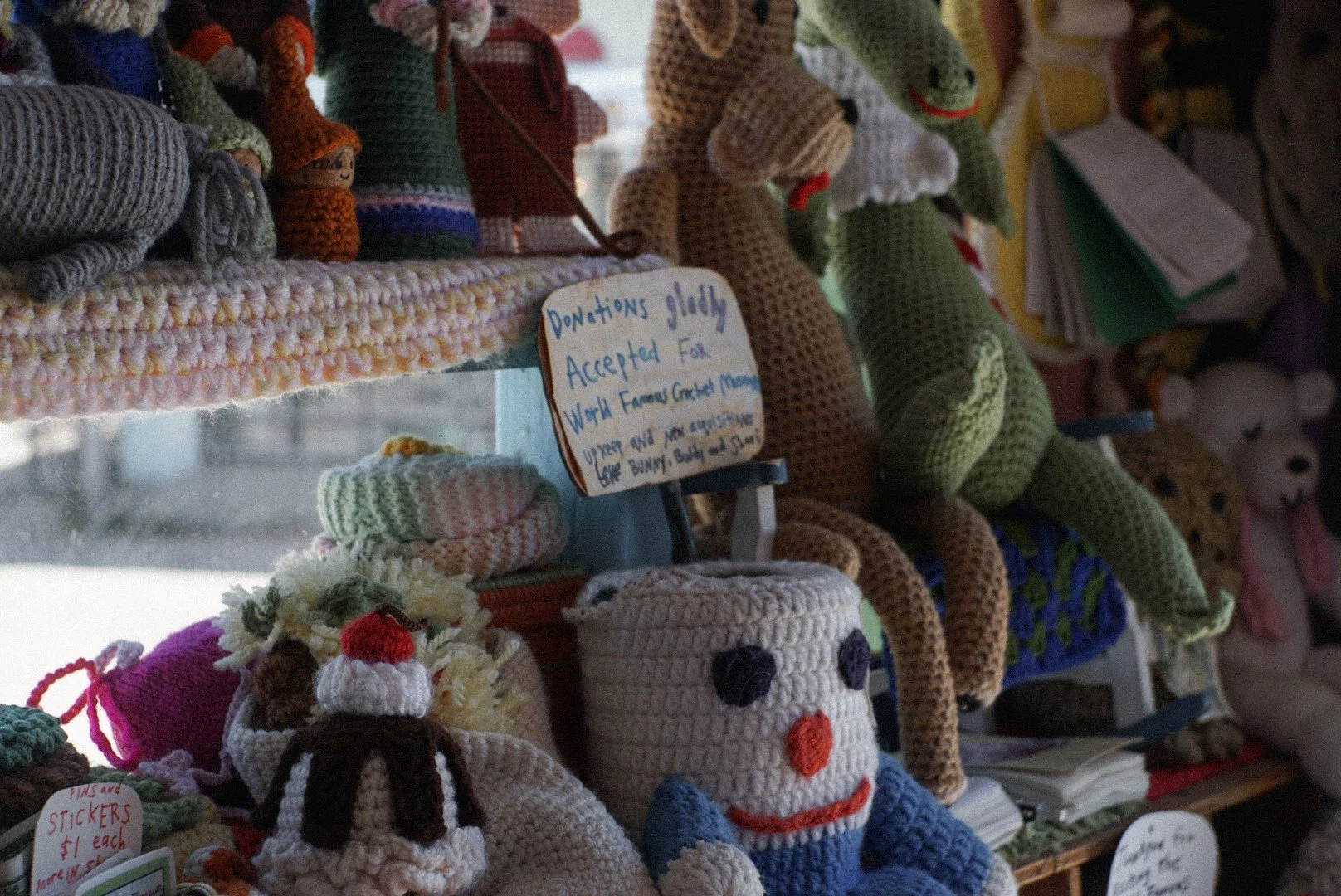 As I mentioned, this free and open to the public museum is a part of Art Queen. It’s a very small converted photo booth that maybe only three or four people at most can fit into at a time. Shari Elf began and maintains this collection of various crocheted items such as dogs, elephants, flowers, smiley faces and more. It’s always open and you can park anywhere in the area, as it’s not a far walking distance from any spot in town.