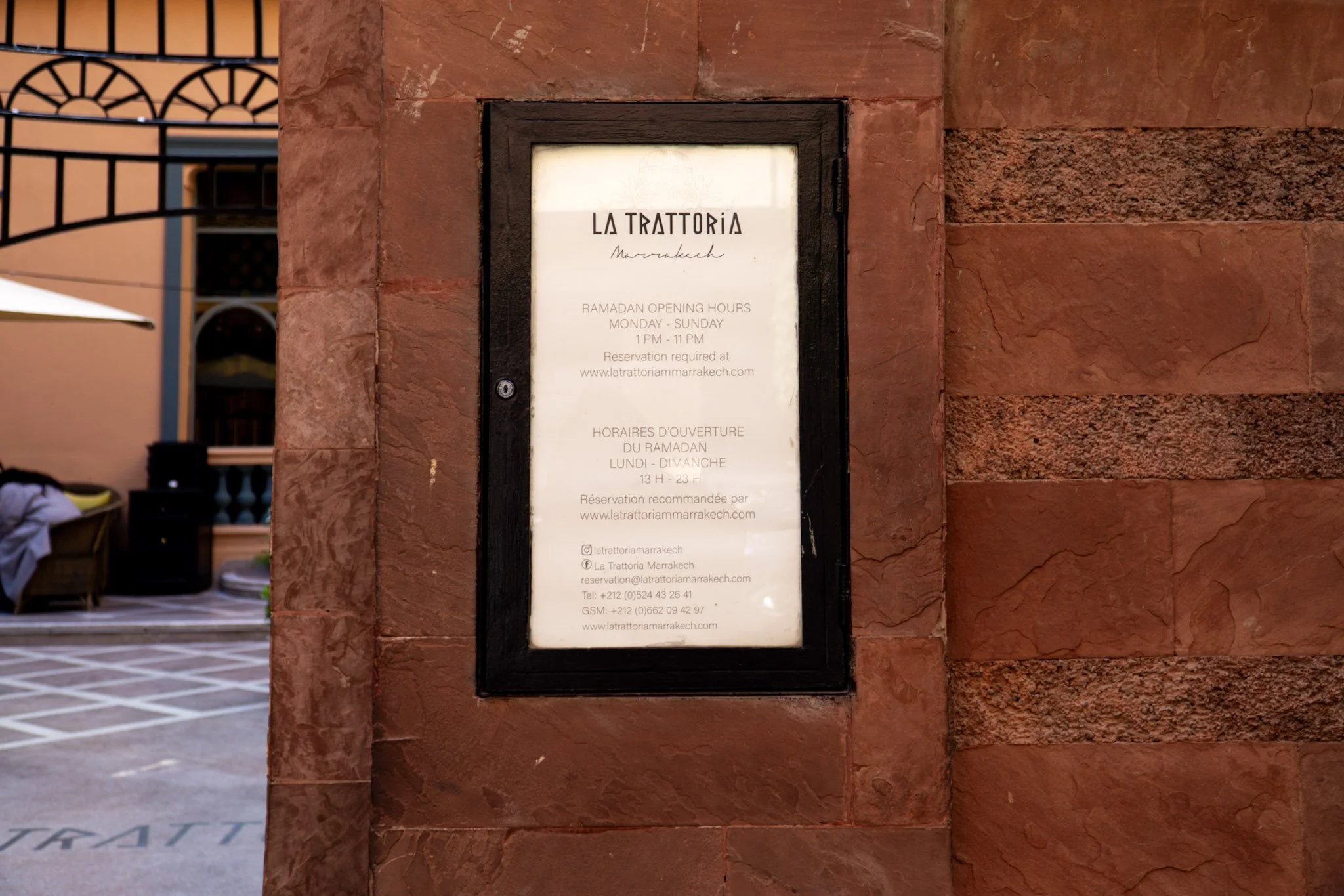 La Trattoria is located in the “new city” area of Marrakech in the Gueliz area, which is about a 10–15 minute taxi ride from the medina depending on traffic. It’s very easy to get to by taxi, and I would definitely recommend making a reservation in advance, especially for dinner and if you want to be in seated in the indoor dining area. You can make reservations online here.