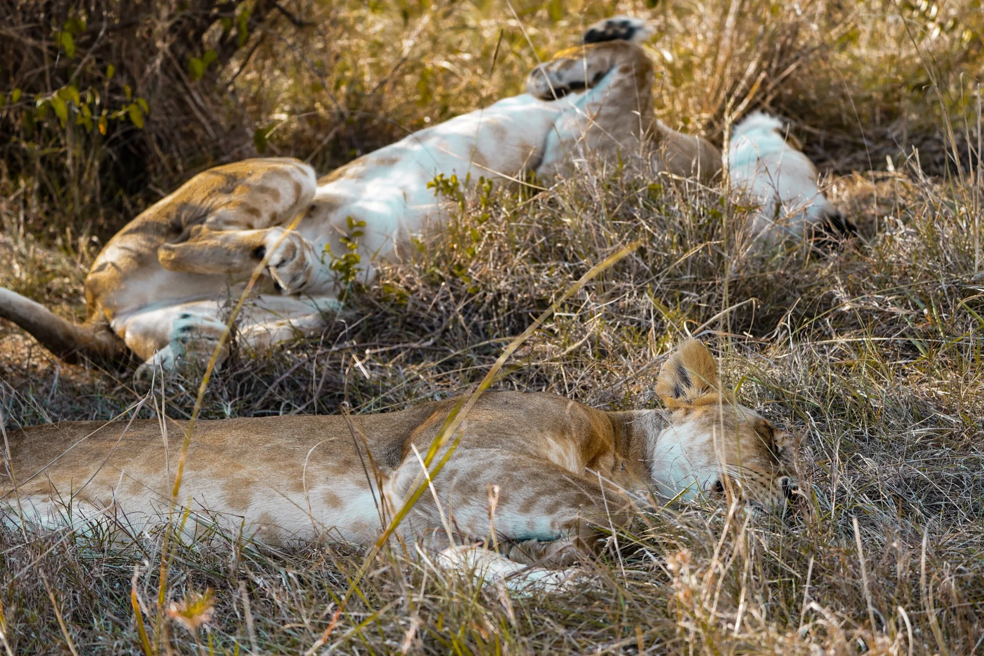 We found a group of lions lounging in the shade of a bush and pretty camouflaged by the wheat colored grass. The beautiful twist was that their cubs, four of them, were hidden about a mile away, and this turned out to be one of the great highlights of the trip. You think you may not see big cats at all and it turns out you see them all with cubs in tow.