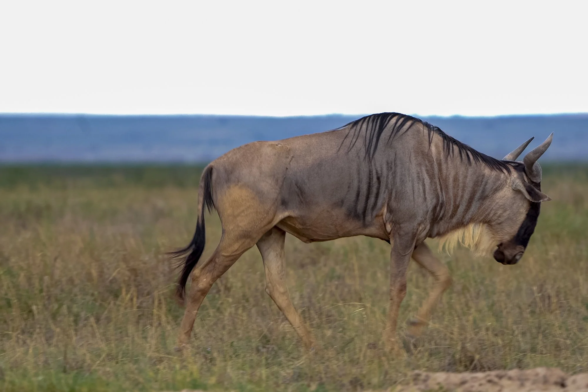 Wildebeest move mostly in herds, but we did see a handful of them solo throughout the plains. They’re scruffy, strong, and always on the move with their bearded faces and sloping backs. They’re known for their constant migrations and dramatic river crossings. Even when they’re just grazing, they sort of look like they’re thinking about their next journey, and that’s probably because they are.