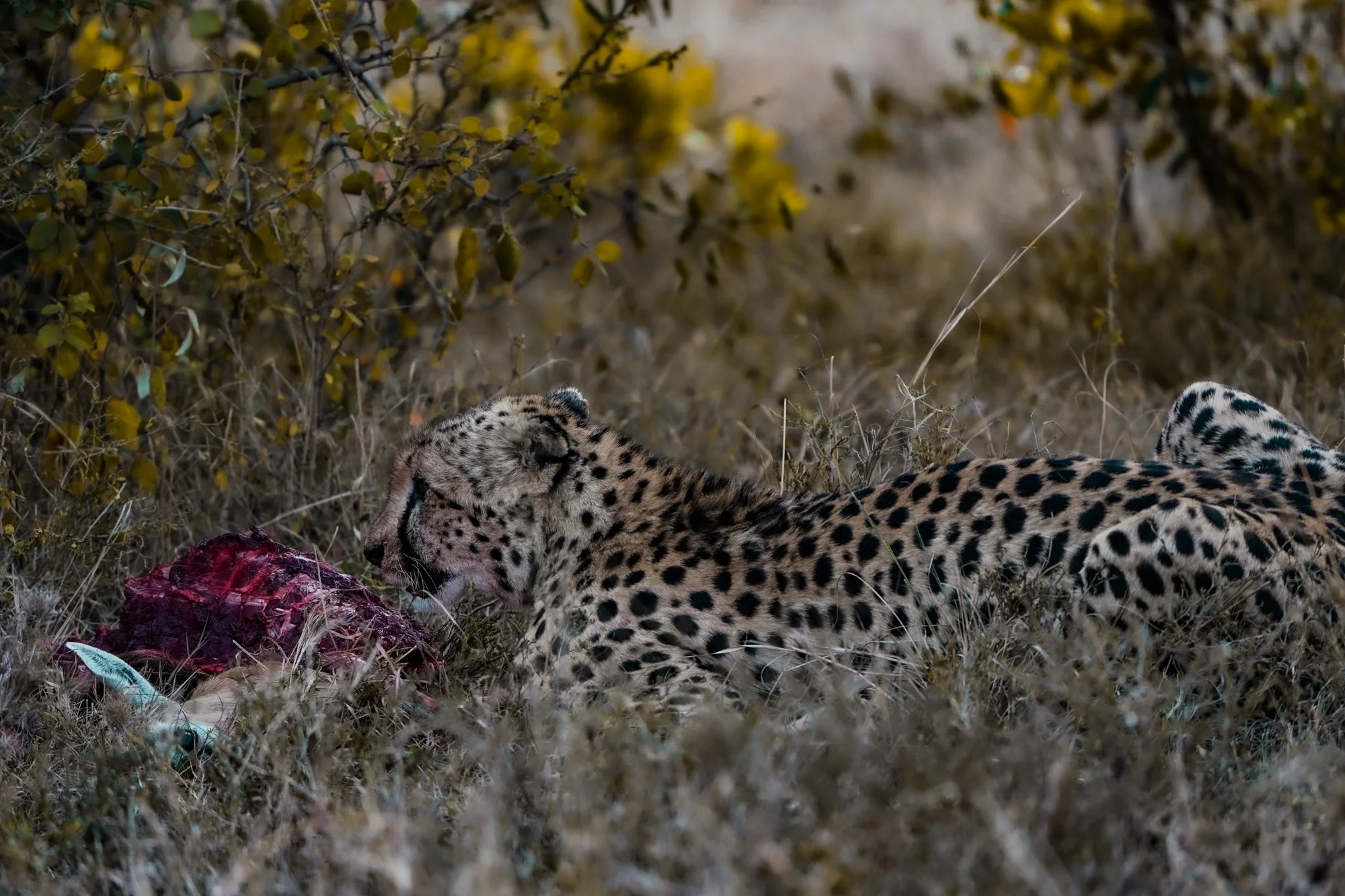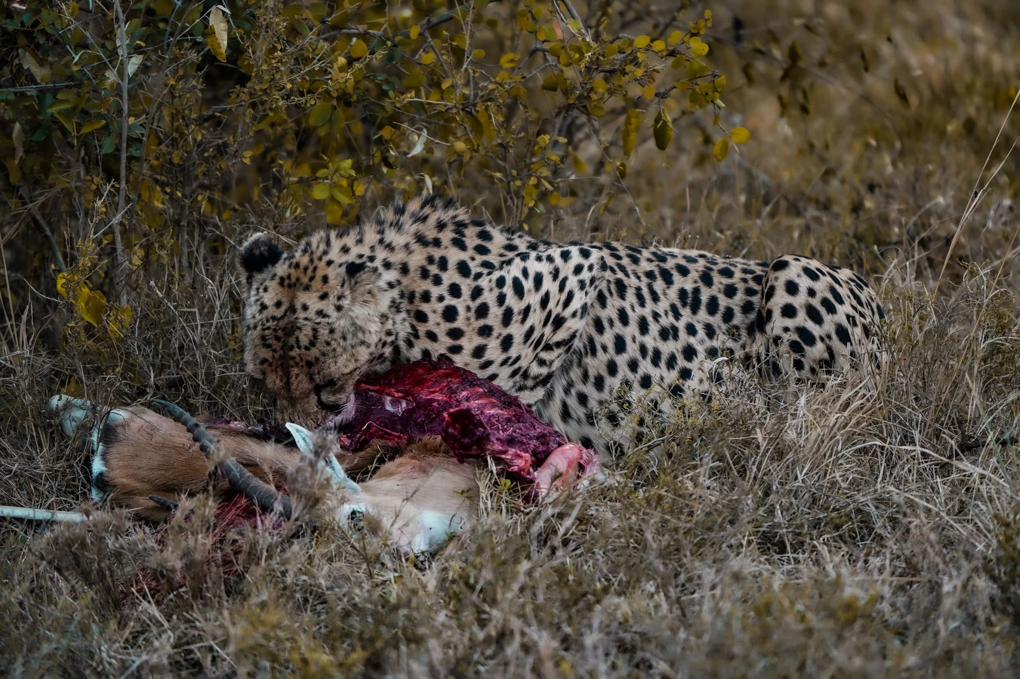 The most striking moment we came across in Maasai Mara seemed like it was straight out of the nature documentaries I watch: a cheetah with a fresh kill. We learned that cheetahs are the only big cats that eat their kill fresh, and they do not revisit a kill once they’ve finished eating it. Hunting at 70 miles per hour, they’re confident in their ability to catch something else fresh whenever hunger arises again. This moment was so raw and powerful that we watched in complete silence for about twenty minutes. Apparently, not everyone on safari gets to see a cheetah, so I felt quite lucky to have experienced this and captured the moment so well.