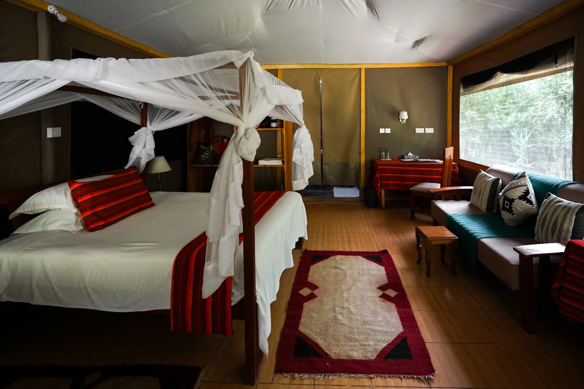 The camp also has no animals roaming inside the fence, so you get the immersive experience without the nervous walk back to your tent at night. However, you can spot animals such as zebras and topis beyond the fence if you have binoculars or a zoom camera.